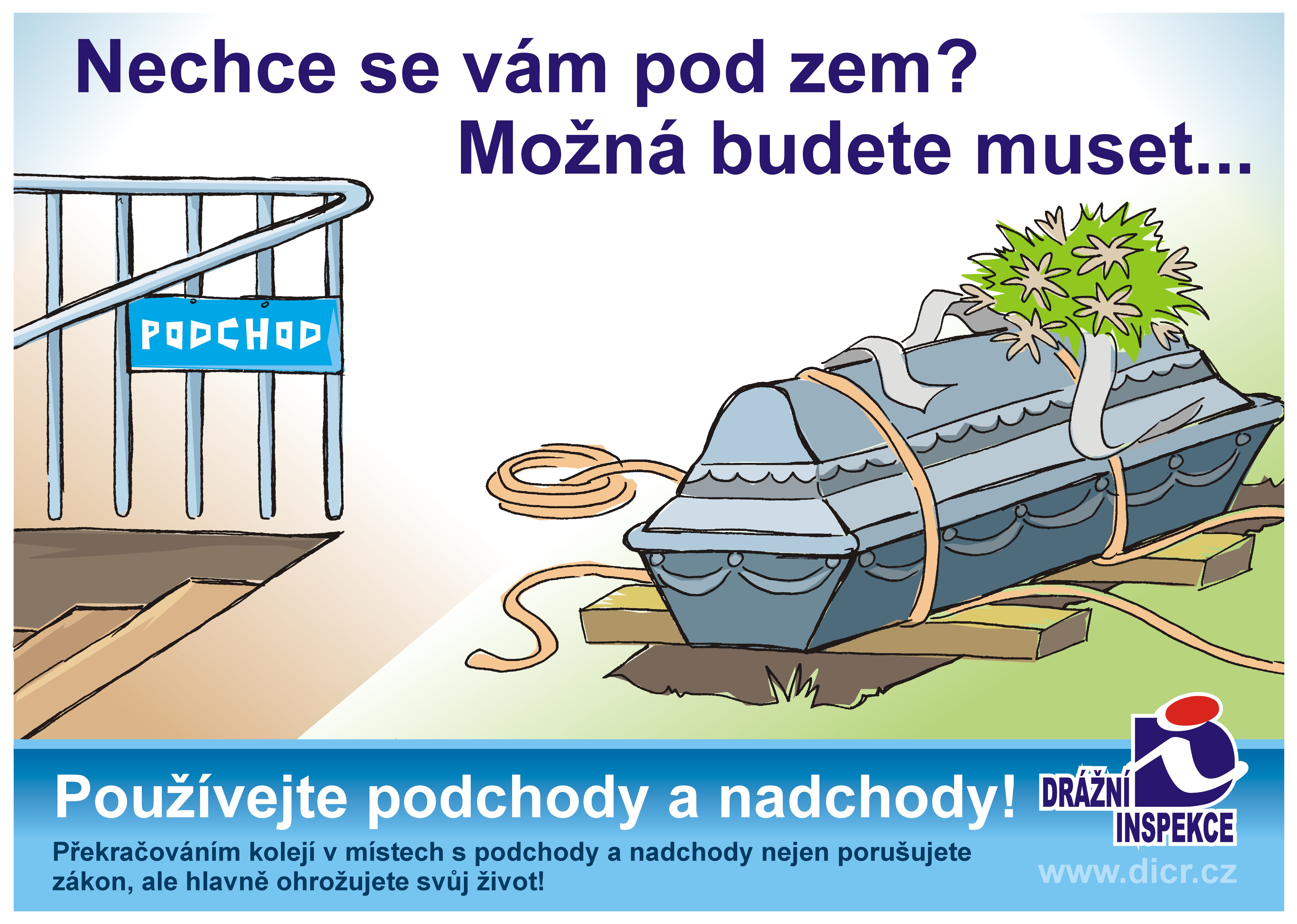Drážní inspekce České republiky rozjela docela zajímavou, lehce morbidní, kampaň, která by měla sáhnou do svědomí lehkomyslných, kteří ohrožují svoje zdraví a mnohdy i život.