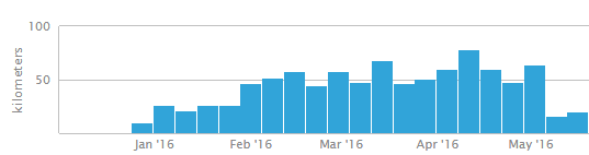 Statistiky Runkeeper ve verzi zdarma nenabízí moc statistik, ale naštěstí umožňuje export dat ve formátu gpx. Našel jsem šikovný nástroj JRunanalyzer, do kterého to můžete nasypat. Vychází mi, že jsem uběhl (maraton nepočítaje) 62 tréninků v celkové délce 803,2 km (doposud jsem běhal 500 km za rok). Zabralo mi to 74 hodin a 48 minut čistého času, nastoupal jsem 10 758 metrů a držel průměrné tempo 05:35 min/km. Nejdelší trénink měřil 32 km a uběhl jsem ho za 3:07.
